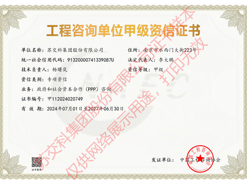 工程咨詢專業資信甲級證書