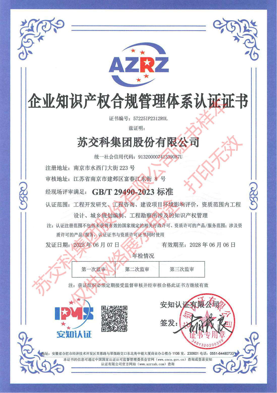 企業知識產權合規管理體系認證證書