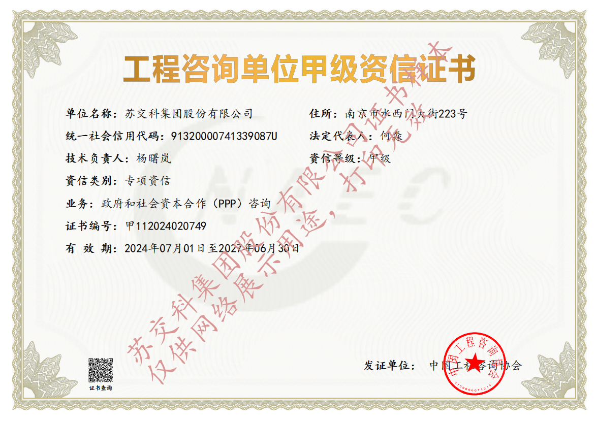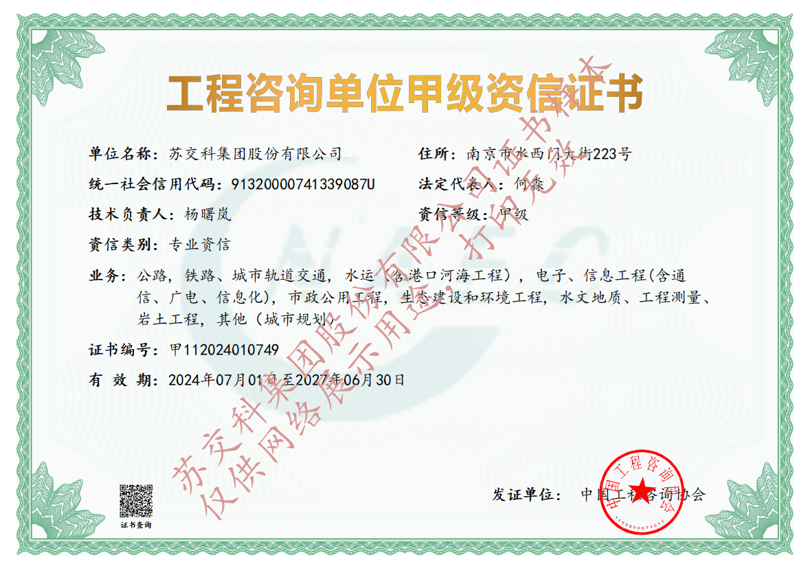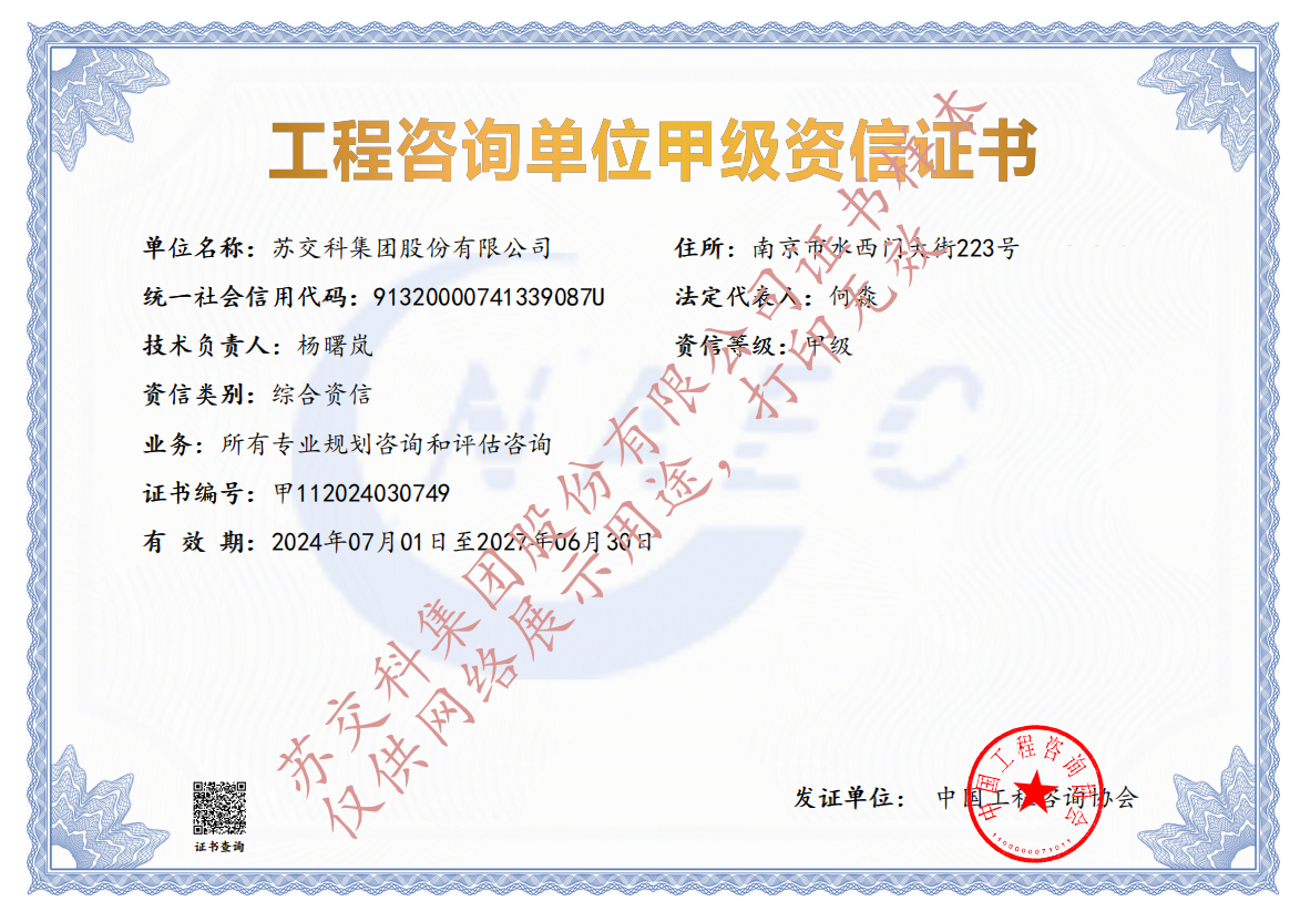 蘇科建設工程監理水運工程資質甲級